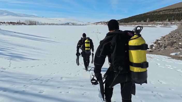 Hava sıcaklığının sıfırın altında 25 dereceye kadar düştüğü Erzurum’da dalış eğitimi için hazırlıklarını tamamlayan SAK timi, Palandöken ilçesine 20 kilometre uzaklıkta 2 bin 300 rakımdaki Tekederesi Göleti’ne gitti.