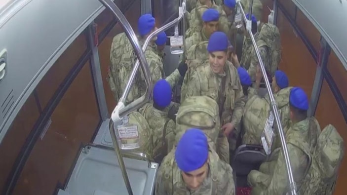 Havalimanından otobüse binen askerlerin, "Buradan hemen gidelim, işimize bakalım, insanlar bizi bekliyor. Hadi hemen gidelim.” sözleri duygulandırdı.
