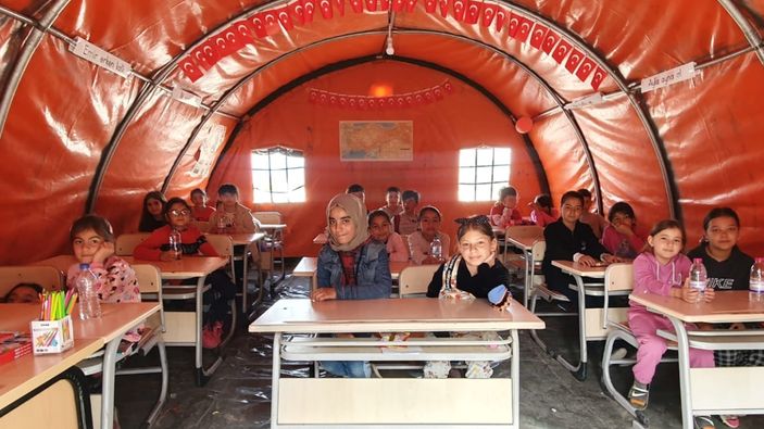 Büyük yıkıma uğrayan kentlerde gece gündüz görevini yerine getiren Mehmetçik, kurduğu eğitim çadırlarıyla depremzede çocukların eğitimden geri kalmaması için çabalıyor.
