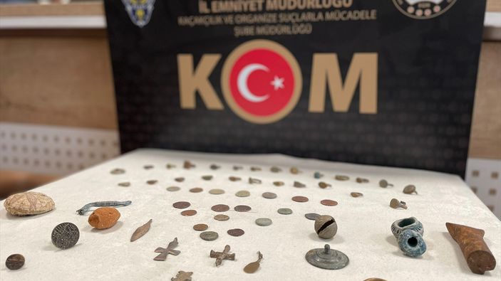 Operasyon düzenleyen ekipler, belirlenen adrese yaptıkları baskında tarihi eser niteliği taşıdığı sanılan yüzük, sikke ve mühürlerin de aralarında bulunduğu 60 obje ele geçirdi.