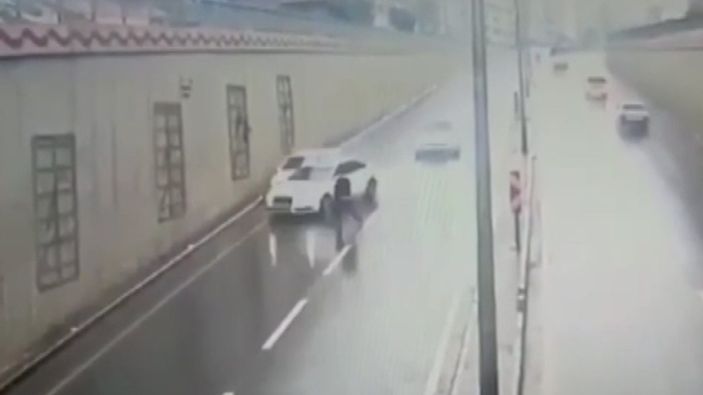 Güvenlik kamerasına yansıyan görüntülerde refüjde yürüyen A.E.A'nın zaman zaman kara yoluna çıkması, seyir halindeki araçların arasında dolaşması ve otomobilin çarpması sonucu yaralanması yer alıyor.