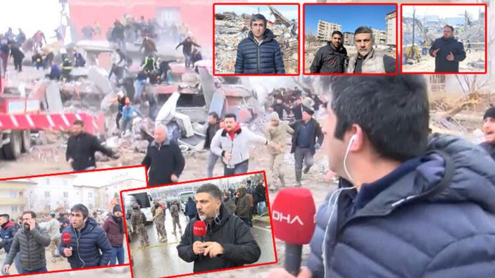 Kahramanmaraş Pazarcık merkezli saat 04.17'de, 7.7 büyüklüğünde yaşanan depremin ardından, aynı gün saat 13.24’te Elbistan merkezli 7.6 büyüklüğünde meydana gelen depreme birçok muhabir canlı yayında yakalandı.