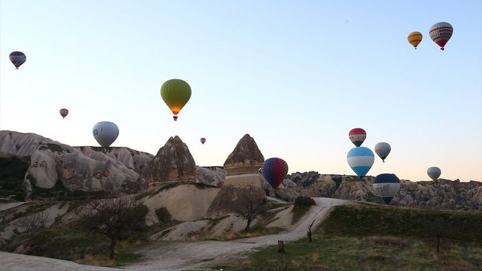 Yerli ve yabancı turistlerin, manzarayı gökyüzünden izlemelerine imkan sunan sıcak hava balonları, yapılan hazırlıkların ardından Göreme beldesindeki Kılıçlar Vadisi'nden peş peşe gökyüzüne yükseldi.