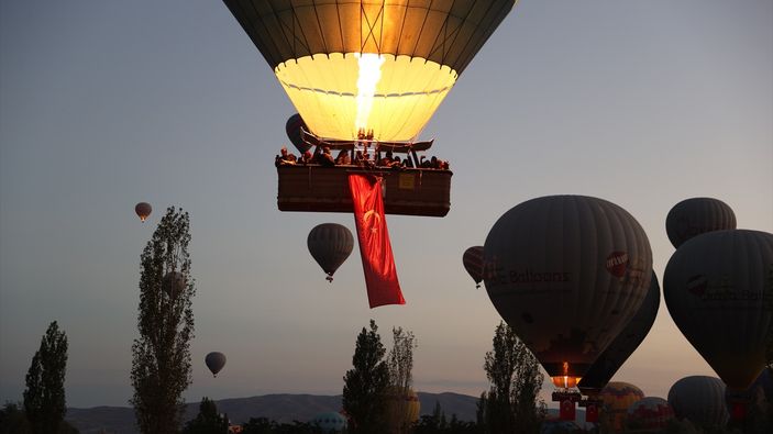 Kapadokya'da balonlar Türk bayraklarıyla havalandı