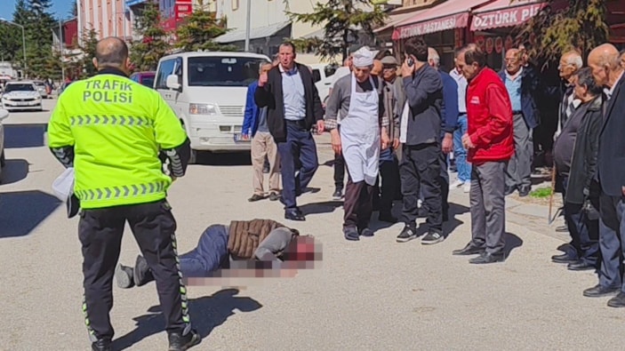Çarpmanın etkisiyle savrulan yaşlı adam ile motosiklet sürücüsü yere düştü.