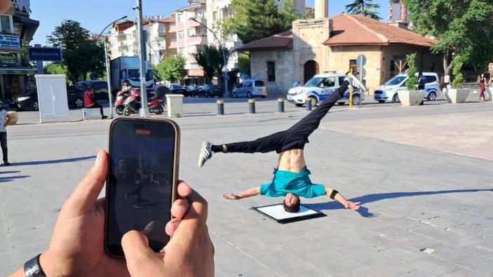 Karaman'da 31 yaşındaki memur Özkan Yağmur, kent merkezindeki meydanda yaptığı break dans gösterisiyle ilgi odağı oldu.