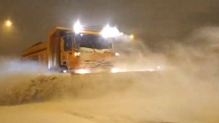 Karayolları ekiplerinin karla mücadelede yoğun çalışmaları VİDEO