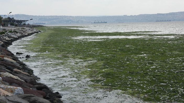 Bostanlı sahiline dün spor için gelenler, denizde yeşil renkli yosunlar olduğunu fark etti. Birçok vatandaş, ilk kez gördükleri görüntü karşısında şaşkınlık yaşadı. Maddenin, halk arasında 'deniz marulu' olarak bilinen 'ulva lactuca' olduğu anlaşıldı.