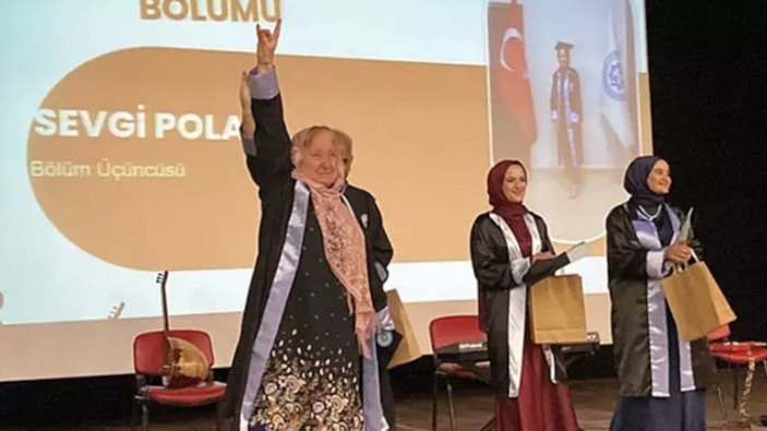 Kafkas Üniversitesi'nden mezun olan 69 yaşındaki Ayşen Arda İşçi, diplomasını bozkurt işareti yaparak aldı. UEFA’nın Demiral için verdiği 2 maç men cezasını haksızlık olarak nitelendiren İşçi, "Bozkurt işaret siyasi değil Türklüğün işaretidir" dedi.