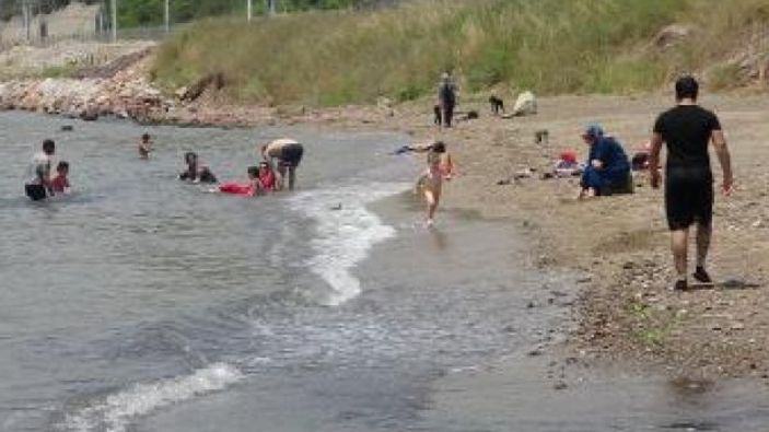 Kocaeli'de derenin kirlettiği plajda yüzdüler