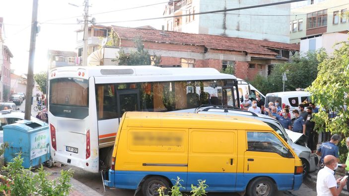 Sürücüsünün hakimiyetini kaybettiği midibüs bayır aşağı geri giderek, önce K.A. idaresindeki 01 ADM 474 plakalı Renault marka otomobile, sonra park halindeki 41 MA 1751 ve 74 AU 068 plakalı araçlara hızla çarparak durabildi.