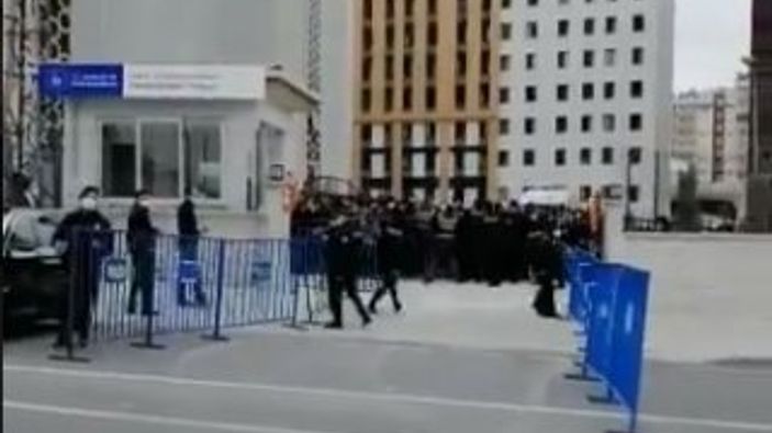 Binayı terk etmek isteyen vatandaşlar, polisin güvenlik önlemi amaçlı çektiği barikatların arasından bina dışına çıkmaya çalıştı.