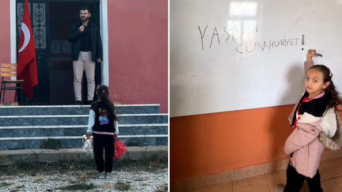 Konya'da yalnızca 1 öğretmen ve 1 öğrencisi olan okulda Cumhuriyet Bayramı kutlandı
