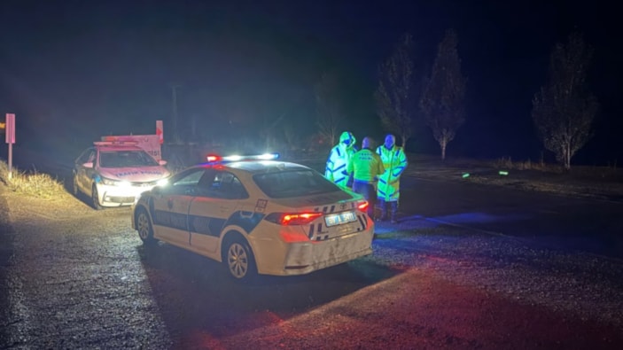 Karayolları ekiplerinin buzlanmanın yaşandığı alanlarda tuzlama yaptığı güzergahta, trafik polisleri ulaşım güvenliği için kontrollerini sürdürüyor.