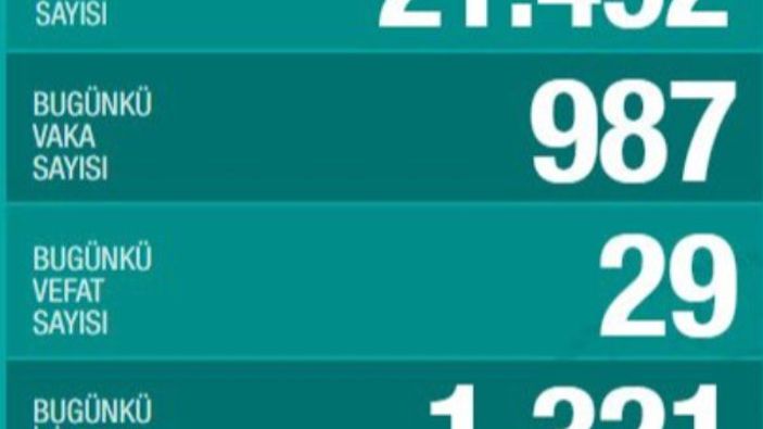 Bakan koca'nın paylaştığı tabloya göre bugün korona nedeniyle 29 kişi daha hayatını kaybetti.