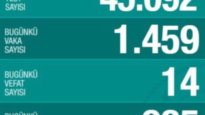Bugünkü yeni vaka sayısı ise 1459 oldu.