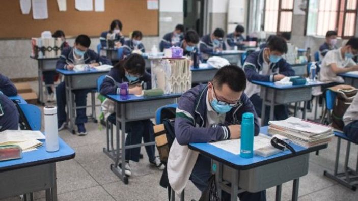 Çin'in virüs merkezi Vuhan kentinde, öğrenciler okula döndü. Öğrencilerin maske taktığı okullarda, derslikler sosyal mesafe kurallarına göre düzenlendi.