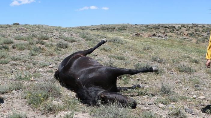Karnında yavrusu da ölen atın öldüğü bölgeye giden muhtar Somkaya ve atın sahibi Onur Küçük, atı öldürenlerin bulunup cezalandırılmasını istedi.