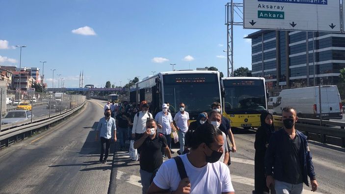 Metrobüsün arızalanması sonrası yolcular aracı tahliye etti.