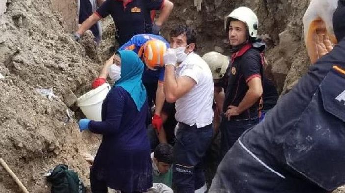 İhbar üzerine gelen AFAD, itfaiye ve sağlık ekiplerince kurtarma çalışması başlatıldı.