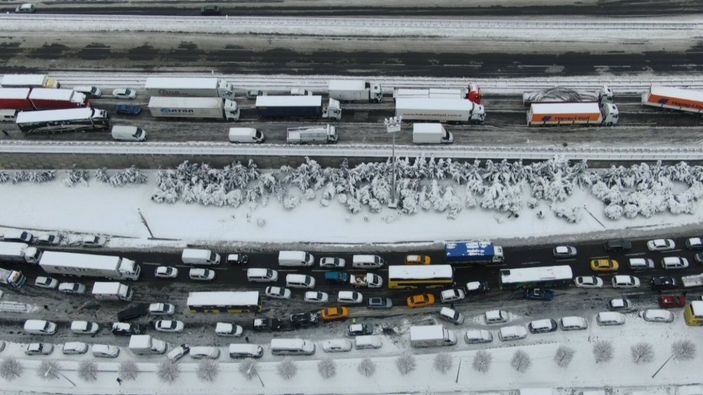 Şiddetini giderek artıran kar yağışı nedeniyle Kuzey Marmara Otoyolu'nda zincirleme kazalar ardı ardına gelirken, tedbir ve önlem amaçlı otoyolda trafik tamamen durdurulmuştu.