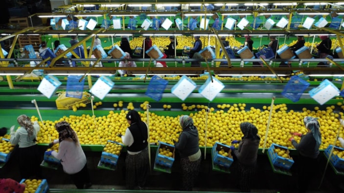Narenciye işleme tesisinde çalışan kadınlardan Eşe Bulut, limonların dökümden itibaren boy boy ayrıldığını, kendilerinin de ayrıştırma işlemi yaptığını söyledi.