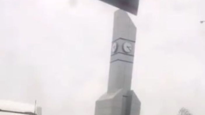 Lodos Çatalca'da saat kulesini devirdi VİDEO