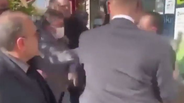 Polis ekipleri tarafından bölgeden uzaklaştırılan şehit abisi tepkisine devam edince İyi Partili vekil Lütfü Türkkan, şehit abisinin yanına gidip boynuna sarılarak bir mühlet dinledi.