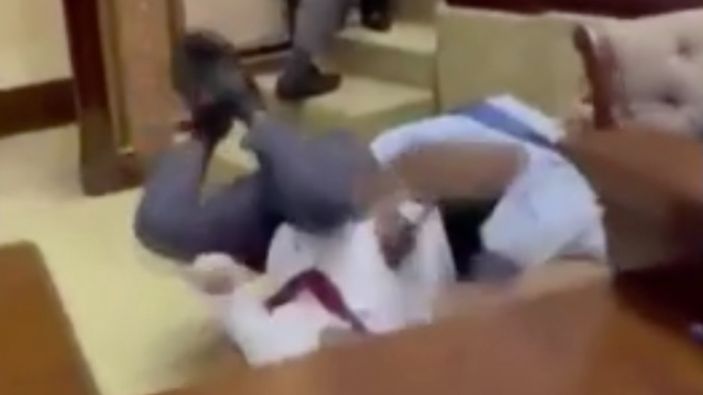 Sosyal medyada paylaşılan görüntülerde, milletvekillerinin kavga ettiği, birbirini tekmelediği ve yere düştüğü anlar kameralara yansıdı.