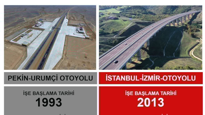Çin'de 1993 yılında başlayıp 2022 yılında açılan Urumçi-Pekin Otoyolu'yla, yalnızca 6 yılda bitirilen İstanbul-İzmir Otoyolu'nun kıyaslandığı iddialar tek tek çürütüldü.