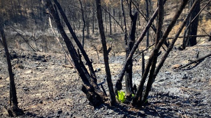 Bir taraftan yangından etkilenen yerleşim yerleri, diğer taraftan da bölgenin yeniden ağaçlandırılması için çalışmalar yürütülürken, ormanın doğal olarak kendini yenilemesiyle ilgili, bölgeden ilk sevindirici haber de geldi.