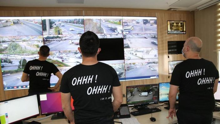 Kentteki güvenlik kameralarının izlendiği birimde çekilmiş fotoğrafların bulunduğu paylaşımda:
