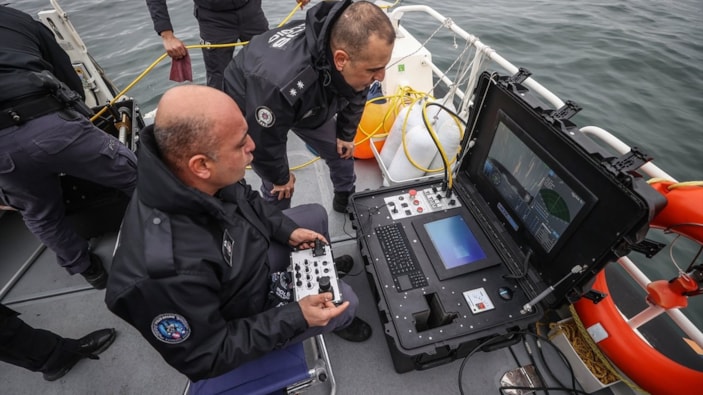 Deniz üstünden 4 bot ile gün boyu keşif yapan ekipler, İnsansız Su Altı Robotu (ROV) ile görüntüleme ve tarama yapıyor. ROV, üstünde takılı mekanizmadaki tutucu kol yardımıyla su altında tespit edilen unsurları deniz üstüne çıkarabiliyor.