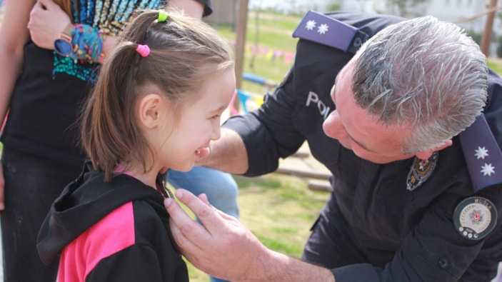 9 yaşındaki depremzede Çınar Arpacı ‘Bugün çok eğlendim polis abi ve ablalarıma çok teşekkür ederim.