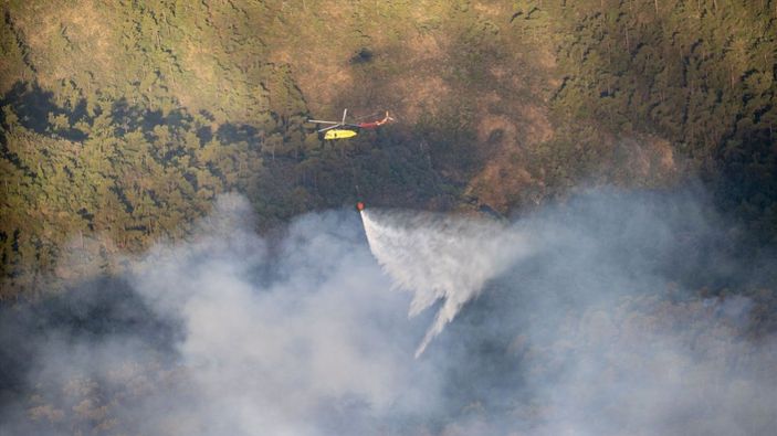 Bu kapsamda 20 helikopter, 14 uçak olmak üzere 34 hava aracı ve yüzlerce kara aracı ile söndürme çalışmaları sürüyor.