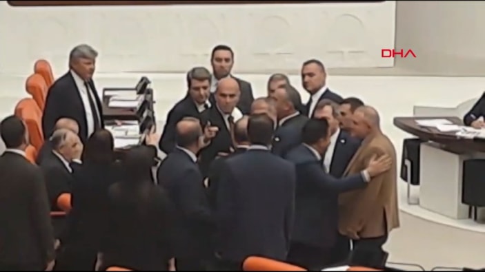 Diğer partililer araya girerek tansiyonu düşürmeye çalışırken, kısa süreli tartışma yaşandı.