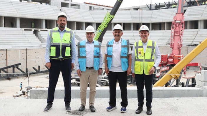 Özhaseki, Proje Müdürü Fikret Kolancalı'dan bilgi aldı. Ardından inşaat alanını gezen bakanlar ve TBF Başkanı, devam eden çalışmaları inceledi.