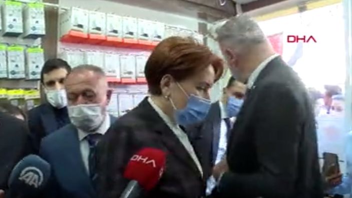Akşener hızla gazetecilerden uzaklaşırken, danışmanları da gazetecileri soru sormamaları için uyardı.
