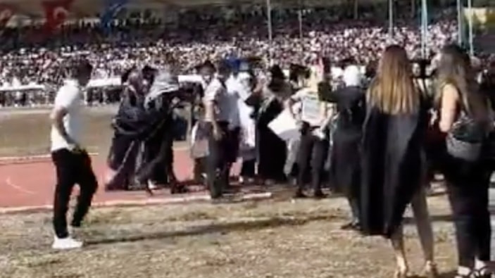 Mersin Üniversitesi'nin mezuniyet töreninde Gazze'ye destek pankartı açan öğrencilere görevliler müdahale etti. Pankarta müdahale sırasında bir akademisyen, "Gazze'nin Allah belasını versin" ifadelerini kullandı.