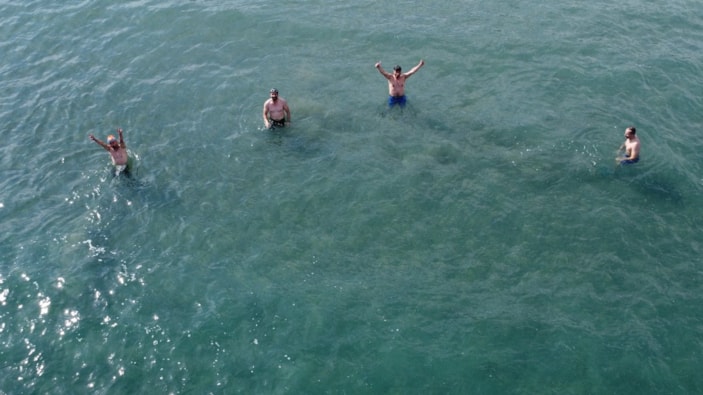 Erdemli ilçesinde Sibirya soğuklarının hakim olması rağmen bir grup arkadaş denize girdi. Uzun süre yüzen arkadaşlar 11 ay denize girdiklerini, hastalıklardan da koruduğunu söyledi.