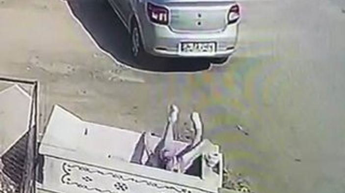 Mezar içine düşen vatandaş güldürdü- İZLE