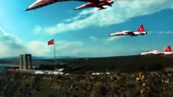 Bakanlık tarafından paylaşılan görüntülerde, Çanakkale Şehitlik ve Şehitler Abidesi'nin yanı sıra, kara, deniz ve havada görev yapan Mehmetçikler ile Kurtuluş Savaşı dönemini hatırlatan görüntüler yer alıyor.