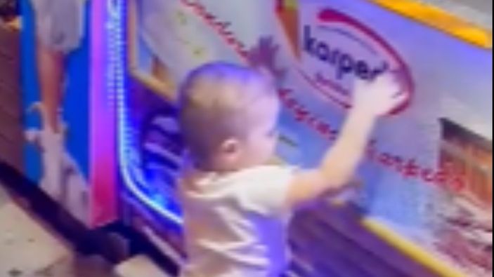 Dondurmacının uzattığı külahı bir türlü yakalayamayan bebek, tezgahı yumruklamaya başladı.