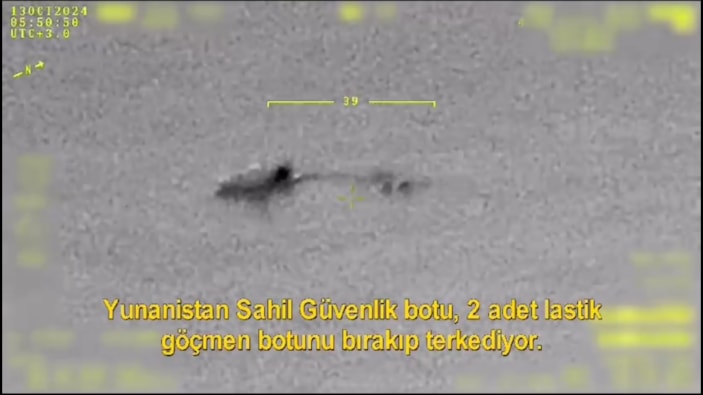Deniz Kuvvetleri Komutanlığımıza ait İHA ile keşif ve gözetleme faaliyeti esnasında, Yunanistan'a ait Sahil Güvenlik botunun Rodos Adası'nın kuzeyinde, düzensiz göçmenleri taşıyan 2 adet bot bıraktığı görüntülendi.