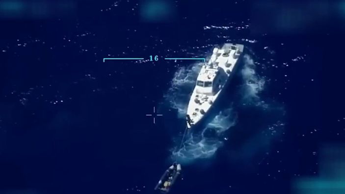Deniz Kuvvetleri Komutanlığı'na ait İHA, Yunanistan'ın Türk kara sularına geri itme eylemini kayıt altına aldı.