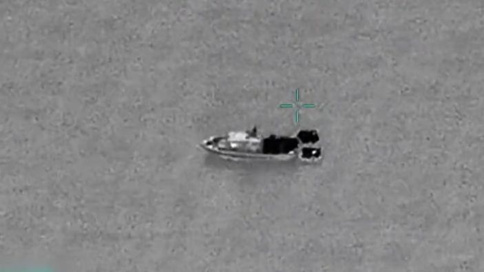 Deniz Kuvvetleri Komutanlığı'na ait İHA, Yunanistan'ın Türk kara sularına geri itme eylemini kayıt altına aldı.