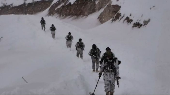 Milli Savunma Bakanlığı, Pençe-Kilit Operasyonu bölgesinde görev yapan askerlerin karlı arazideki görev görüntülerini paylaşarak 'Vatan denince zorluk tanımayan yürekleriz' notuna yer verdi.