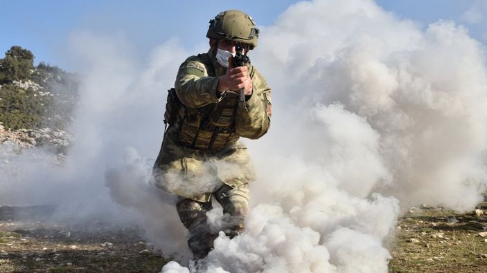 Eğitime dair fotoğraflara yer verilen paylaşıma "Korkusuzdur dağların efesi, titretir düşmanı Komandonun sesi!" notu düşüldü.