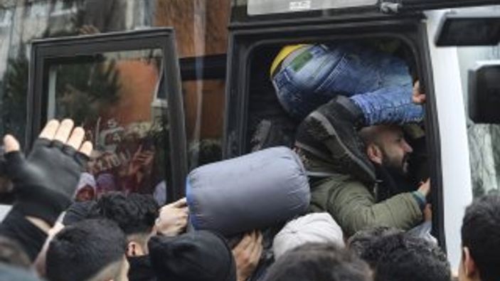 Aralarında kadın, çocuk ve yaşlıların da olduğu göçmenler, Avrupa sınırında bulunan Edirne'ye gitmek üzere otobüslere binerek hareket etti.