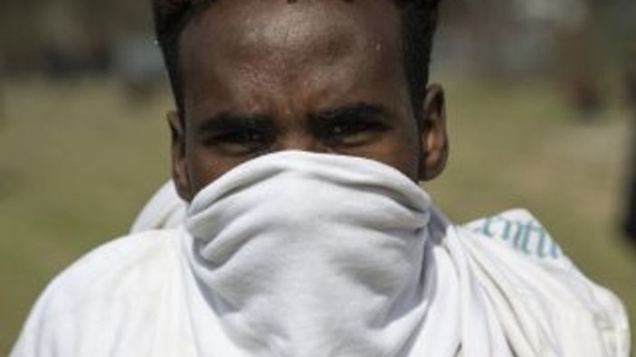 Yunanistan, sınırına dayanan göçmenleri gaz bombalarıyla püskürtmeye çalışırken, göçmenler gazdan etkilenmemek için pet şişelerden gaz maskesi yaptı.